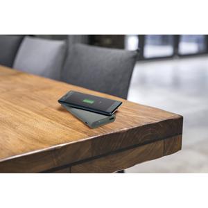 Descrição: Bateria portátil em ABS com acabamento emborrachado e carregador por indução (wireless) super-rápido. Bateria de lítio com capacidade de 10.000 mAh e tempo de vida ≥ 500 ciclos. Os 15W de potência permitem carregamento super-rápido dos dispositivos móvies. Indicador de carga, porta de entrada microUSB, porta de entrada/saída USB-C e porta de saída USB-A. Incluso cabo USB-C para carregar a bateria. Compatível com dispositivos móveis com tecnologia de carregamento sem fios. Fornecida em caixa presente. 135 x 75 x 20 mm | Caixa: 150 x 95 x 25 mm