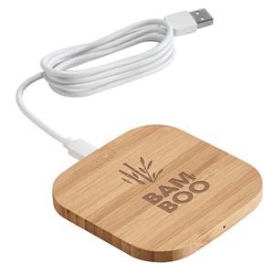 Descrição: Carregador por indução (wireless) super-rápido em bambu. Entrada USB-C e potência máxima de carregamento de 15W. Incluso cabo USB-C de 1 m para carregar. Compatível com smartphones com tecnologia de carregamento sem fios. Fornecido em caixa presente de papel kraft reciclado. A cor e o resultado da impressão nos materiais naturais pode variar entre produtos. 92 x 92 x 9 mm