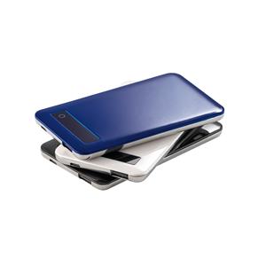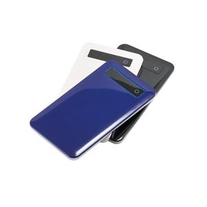 Descrição: Bateria portátil em ABS e aço inox com tela touch e indicador de carga. Bateria polímero de lítio com capacidade de 4.000 mAh e tempo de vida ≥ 500 ciclos. Entrada 5V/1A e saída 5V/1A. Incluso