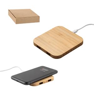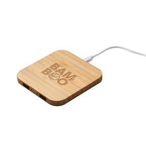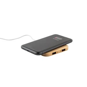 Descrição: Carregador por indução (wireless) super-rápido em bambu com função hub. Contém uma entrada USB-C e duas saídas USB-A. Possui uma potência de carregamento sem fios de 15W para carregamento super-rápido. Compatível com dispositivos com tecnologia de carregamento sem fios. Incluso cabo USB-C. Fornecido em caixa presente de papel kraft reciclado. A cor e o resultado da impressão nos materiais naturais pode variar entre produtos. 93 x 93 x 9 mm