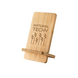 Descrição: Carregador por indução (wireless) super-rápido e suporte em bambu para smartphone. Possui uma potência de carregamento sem fios máxima de 15W. Compatível com smartphones com tecnologia de carregamento sem fios. O suporte em bambu consiste em 2 partes desmontadas. Incluso cabo USB-C de 1 metro. Fornecido em caixa presente de papel kraft reciclado. A cor e o resultado da impressão nos materiais naturais pode variar entre produtos. 140 x 80 x 8 mm