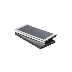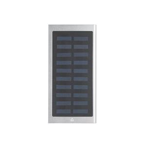 Descrição: Bateria portátil em alumínio 100% reciclado. Bateria em lítio, com painel solar monocristalino e lanterna. Tem capacidade de 8.000 mAh e tempo de vida superior a 500 ciclos. Possui uma porta de entrada USB-C e duas portas de saída USB-A. Incluso cabo USB-C para carregamento com cerca de 30 cm. Ideal para situações de emergência. Fornecido em caixa presente de papel kraft reciclado. 10 x 153 x 74 mm
