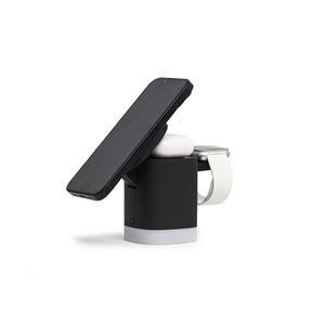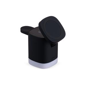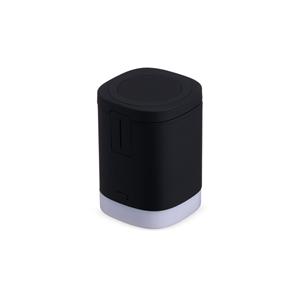 Descrição: Carregador 3 em 1? A nossa base de carregamento é diferenciada, já que possui indução para relógio, fones e celular, e você pode usá-los todos ao mesmo tempo, basta que o celular e demais dispositivos tenham a tecnologia QI. O LED RGB possui 2 modos, luz branca e vermelho, verde e azul se alternando. Feita em plástico, a base não armazena energia, portanto, precisa estar conectada ao cabo tipo-C que a acompanha. Largura 6,4 cm Medidas aproximadas para gravação(CxL): 6 cm x 4 cm Peso aproximado(g): 192 Altura 8,9 cm