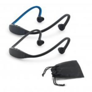 Descrição: Fone de ouvido desportivo em ABS e silicone com transmissão sem fios BT v4.0. Autonomia aproximada de 3 h. Função para atender chamadas e conexão à playlist do dispositivo móvel. Incluso cabo micro USB para carregar. Fornecido com bolsa em TNT. 150 x 135 x 50 mm