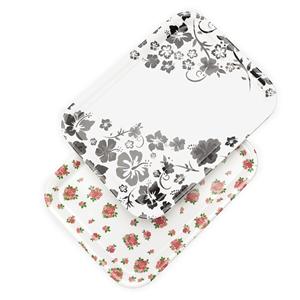 Descrição: Bandeja retangular feito em melamina, material conhecido por sua resistência a impactos e facilidade de limpeza. Largura 25,5 cm Medidas aproximadas para gravação(CxL): 21 cm x 29 cm Peso aproximado(g): 207 Comprimento 34 cm Espessura 0,5 cm
