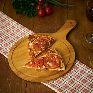 Descrição: Tábua de bambu grande com canaleta e cabo. Largura : 26,2 cm Medidas aproximadas para gravação (CxL): 21 cm X 21 cm Peso aproximado (g): 359 Comprimento : 38,2 cm Espessura : 0,8 cm