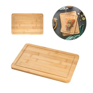 Descrição: Tábua de corte em bambu, com ranhura para líquidos. Certificação EU Food Grade. A cor e o resultado da impressão nos materiais naturais pode variar entre produtos. 300 x 200 x 12 mm