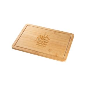 Descrição: Tábua de corte em bambu, com ranhura para líquidos.. Certificação EU Food Grade. A cor e o resultado da impressão nos materiais naturais pode variar entre produtos. 350 x 250 x 12 mm