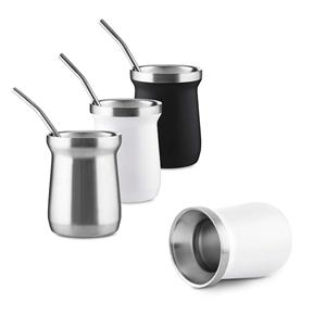 Descrição: Cuia térmica em inox com capacidade para até 250ml. Possui estrutura de parede dupla, que permite conservar a temperatura de líquidos por mais tempo sem transferir a sensação de frio ou calor para a parede externa. Acompanha canudo bomba em inox. Largura 8,1 cm Medidas aproximadas para gravação(CxL): 6 cm x 5 cm Peso aproximado(g): 162 Tamanho total aproximado (CxL): Canudo: 17,5 cm x 1,9 cm Altura 10,5 cm