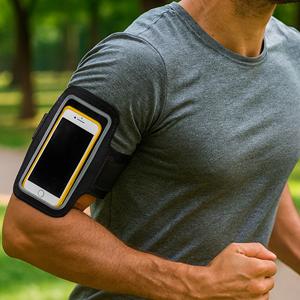 Descrição: Braçadeira para celular em couro sintético e revestimento posterior em neoprene. Possui capacidade para aparelhos de até 6,5 polegadas, além de visor em plástico e alça de neoprene com fechamento em velcro para ajuste no braço. Largura 19,5 cm Medidas aproximadas para gravação(CxL): 3 cm x 2 cm (junção da alça) Peso aproximado(g): 25 Comprimento 18,5 cm Circunferência 0,2 cm