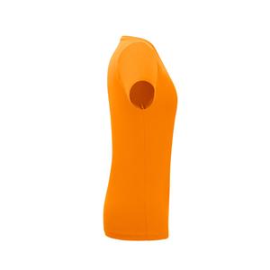 Descrição: Camiseta feminina de corte cinturado em malha 100% algodão (170 g/m2) com fio 30/1 penteado. Com gola em ribana 1x1 com fita de reforço e com costura dupla nas mangas, barra de fundo e laterais. Produto contém certificação ABVTEX. Fabricado no Brasil. Tamanhos: P, M, G, GG